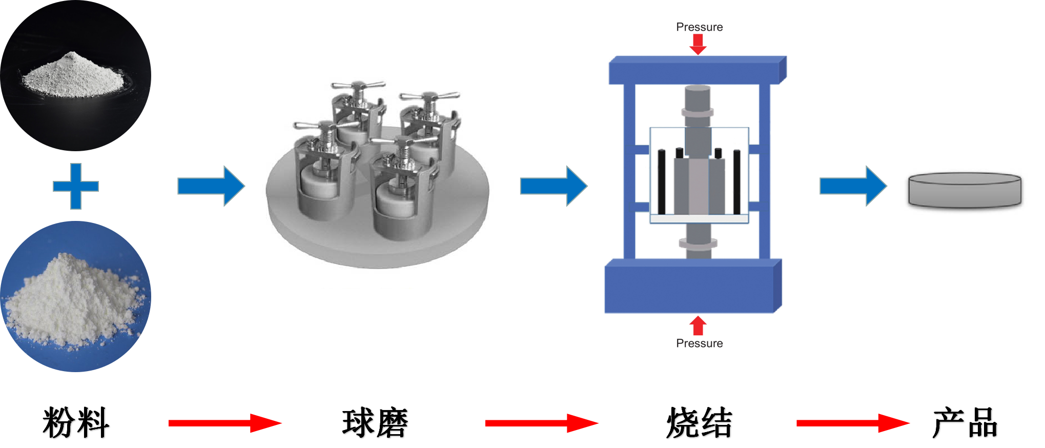 將原料粉體松裝如模具中,壓實后在真空狀態(tài)或惰性氣體的保護下,熱壓燒結(jié)制備。