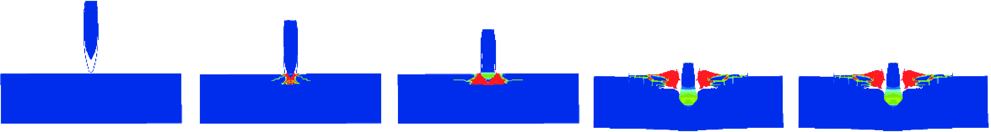 彈體對(duì)復(fù)合陶瓷裝甲材料的侵蝕過程主要經(jīng)歷開坑、侵徹和沖塞三個(gè)過程。